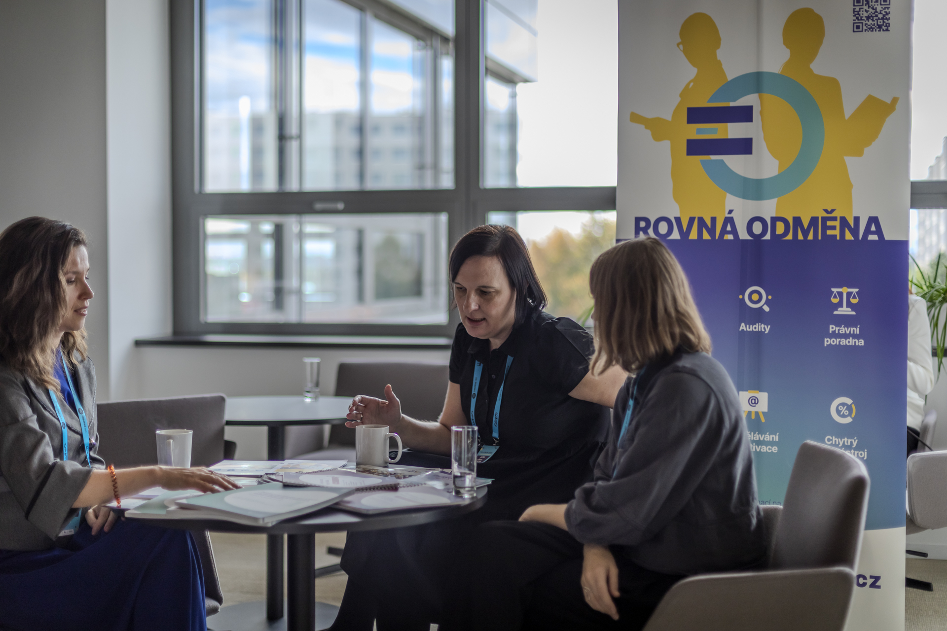 Konference poskytla také prostor pro praktické nástroje, které mohou firmám pomoci při zavádění rovnosti. Konzultační spot projektu Rovná odměna představil návštěvníkům nástroj Logib, který pomáhá firmám identifikovat rozdíly v odměňování mezi muži a ženami a podporuje tak transparentnost a rovnost v odměňování. Tento nástroj byl vyvinut tak, aby zaměstnavatelům poskytoval jasný přehled o jejich současném stavu a pomáhal jim podniknout konkrétní kroky k nápravě nerovnováhy, což je krok správným směrem k dosažení skutečné rovnosti na pracovišti. Účastníci a účastnice konference mohli využít unikátní příležitost konzultovat s expertkami z projektu kterékoliv téma týkající se gender pay gapu diskrétně, mezi čtyřma očima. „Rovné odměňování vzbuzuje řadu otázek, a nutno říci i obav. Mnohdy ale stačí vyjasnit si vše na konkrétních příkladech přímo ze zkušenosti dané firmy,“ okomentovala konzultační činnost projektu jeho hlavní gestorka Lenka Simerská. „Není třeba čekat na novou legislativu, firmy mohou využívat nástroje již dnes,“ dodala.