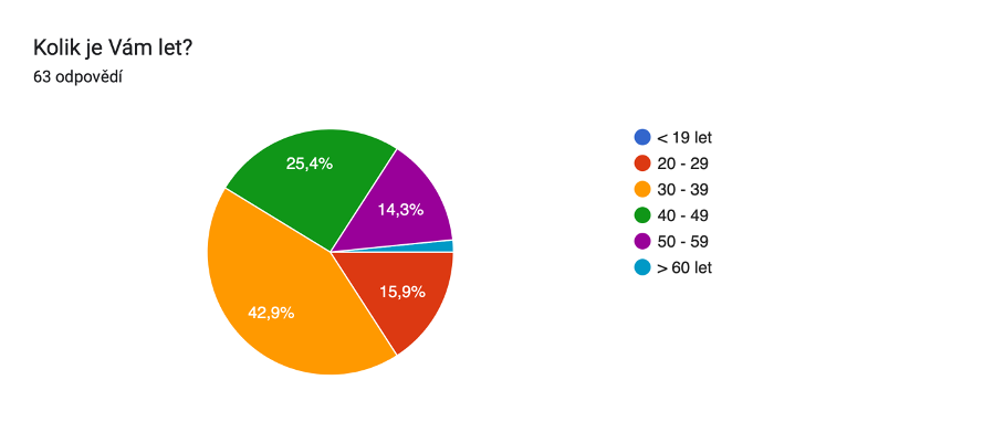 * Převážnou část odpovídajících tvořily ženy, což bylo dáno tím, že jsme anketu představili na konferenci určené primárně ženám. Většina z nich přitom měla vysokoškolské vzdělání, více než 40 % z nich bylo ve věku 30 až 39 let.