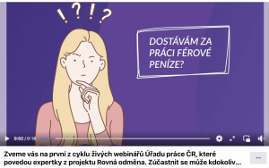 Expertky projektu připravily ve spolupráci s Úřadem práce na 14. června živý webinář na YouTube kanále a na FB Ministerstvo práce a sociálních věcí. Seminář byl určený všem, koho zajímá téma férové mzdy. Prezentace se ujala Petra Sofie Haken, metodička rovného odměňování