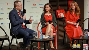 Na 25. listopadu připadá „oranžový den“, kterým začíná 16denní kampaň proti násilí na ženách a dívkách. A projekt Rovná odměna se k ní připojuje. Hlavní gestorka projektu Lenka Simerská (na snímku vedle velvyslance Spolkové republiky Německo v Praze Andrease Künna) vysvětlila, že hlavním