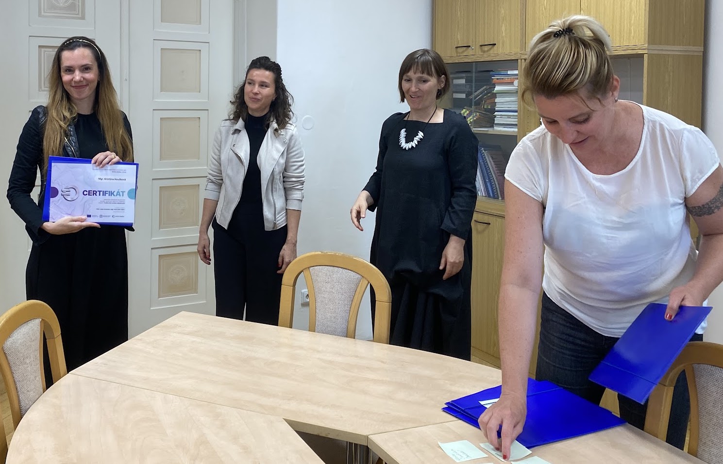 Prvních sedm úspěšných absolventek svoje znalosti a analytické schopnosti potvrdily detailní zkouškou složenou ze dvou písemných a jedné ústní části a v úterý 28. května převzaly na Ministerstvu práce a sociálních věcí certifikáty o úspěšném absolvování zkoušky. Nyní jsou připraveny provádět pilotní komplexní audity rovného odměňování u zaměstnavatelů.