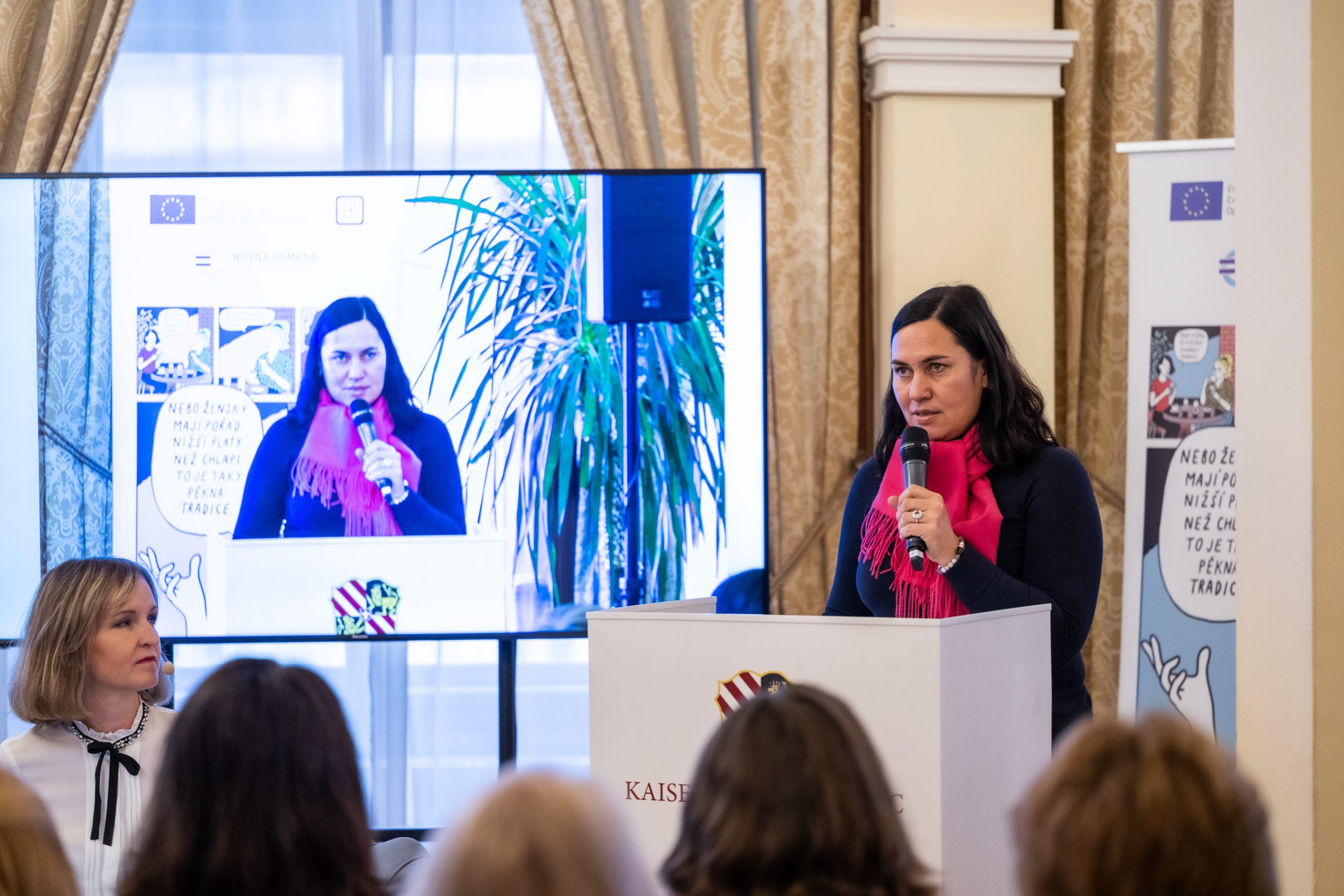 Ms Radelicki was followed by Lenka Simerská, the head of the Gender Pay Gap Reduction Portfolio at MOLSA. She went back to six years ago, when gross unadjusted GPG was 22% and the problem was being addressed systemically at EU level. „The original project is now coming to an end and the next stage is about to begin, which will be even more practical under the name of Equal Reward,“ she said. Lenka Simerská further explained that although the GPG is now at 16%, this is not a cause for celebration. She said that while the gross GPG has decreased slightly every year, the pay gap for the same position shows almost no change. This means, among other things, that some low-wage women are disappearing from the labour market and thus dropping out of the statistics. „These women are switching to precarious forms of employment, to agreements, temporary jobs or the shvarcsystem, and their worsening situation paradoxically improves the statistics.  There are more partadoxes of the Czech GPG and there is a lot of room for change. However, there is also good news. We are seeing an increased interest in our topic and we see that companies and institutions are starting to understand that the ball is now in their court,“ Simerská concluded.