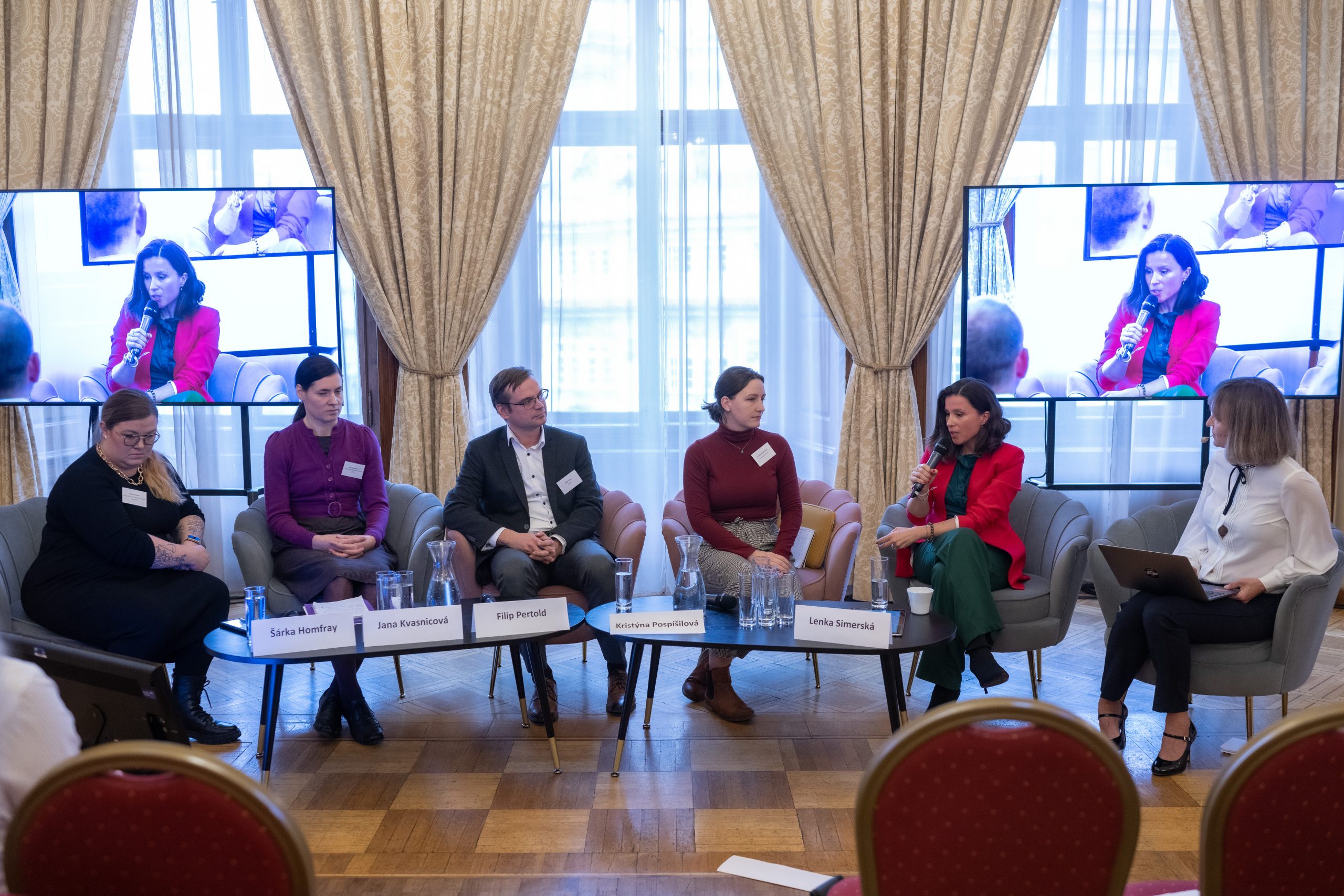 In the morning panel titled Equality in pay over time, Lenka Simerská discussed the issue with Kristýna Pospíšilová, a statistician at the Institute of Sociology of the Czech Academy of Sciences, Filip Pertold, an economist from CERGE-EI and the think tank IDEA, Jana Kvasnicová, head of the Equal Treatment Department of the Office of the Public Defender of Rights, and Šárka Homfray, a lawyer at the Trade Union of State Bodies and Organizations. The panelists agreed that it is important to continuously map the situation and work with data that describe the Czech environment. A number of researches and analyses that have been produced during the five years of the Equal Pay project are essential to address the problem. Šárka Homfray pointed out that women are still more aware of the issue of (in)equality than men and that there is still a lot of work to be done in the area of gender stereotypes.